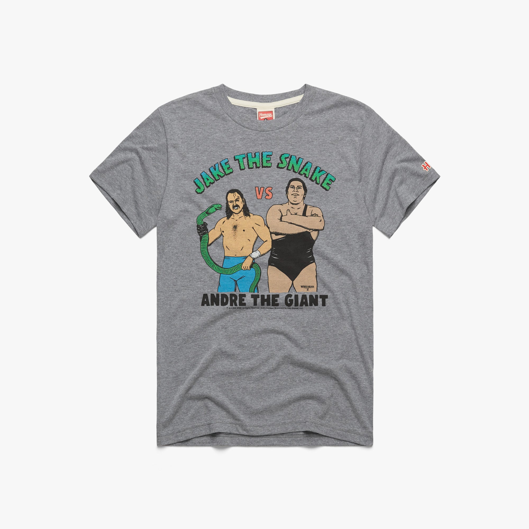 Jake the Snake vs. Andre the Giant: it was one of WrestleMania V’s main events. The big man was scared of snakes, putting him on the defensive, and with Andre’s checkered past with referee Big John Studd, it was Jake’s match to win, which he did, by DQ. Pay homage.