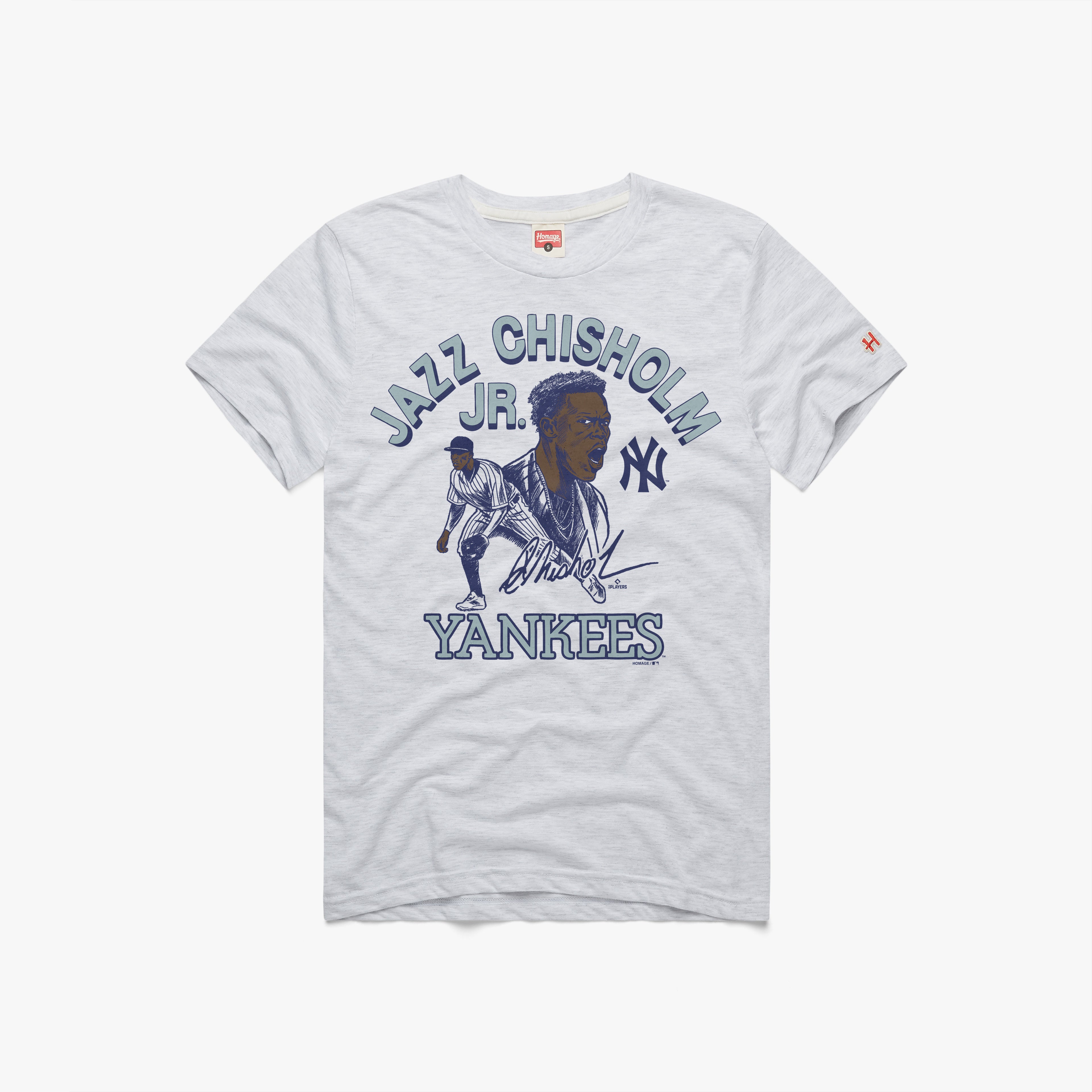 From the moment Jazz Chisholm Jr. pulled on the famous pinstripes in the Bronx, he brought an electric swagger and style that’s impossible to ignore. In a stadium defined by legends and icons, this dynamic young star is already forging his own place among Yankee greats with every highlight-reel play and flash of flair. **This tee is your badge of honor — proof you were there from day one.** It’s a bold, nostalgic tribute that fuses Jazz’s modern swagger with the Yankees’ storied legacy, celebrating a new chapter of greatness in the Bronx. Wear it with pride – it’s made for fans proud to witness Jazz’s first year in pinstripes.