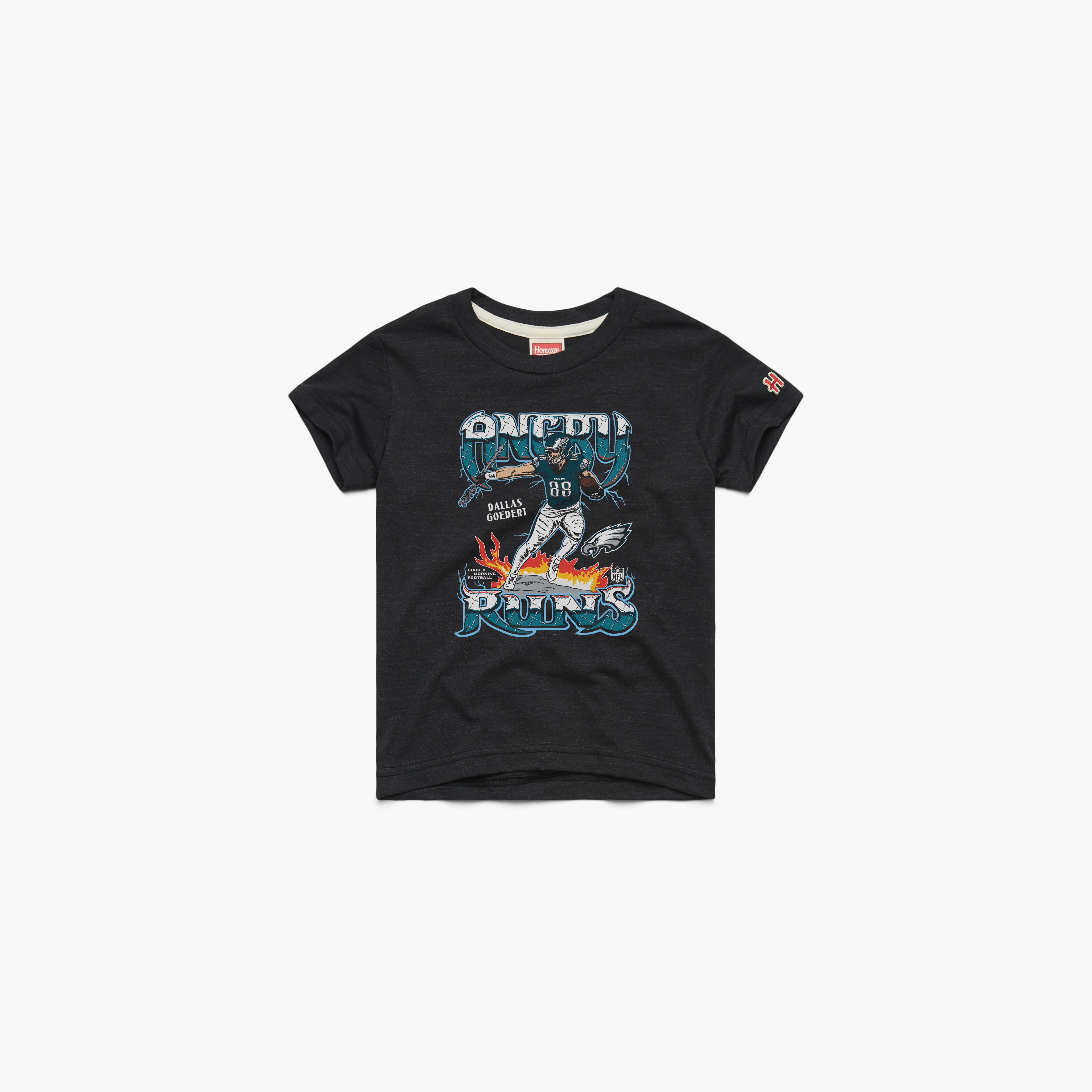 Boom! Rep 2024’s most furious plays with an official Angry Runs tee for Dallas Goedert! Every week of the NFL season Good Morning Football’s Kyle Brandt crowns another Angry Runs winner, and the Eagles’ tight end snagged Week 19’s scepter. Pay homage.