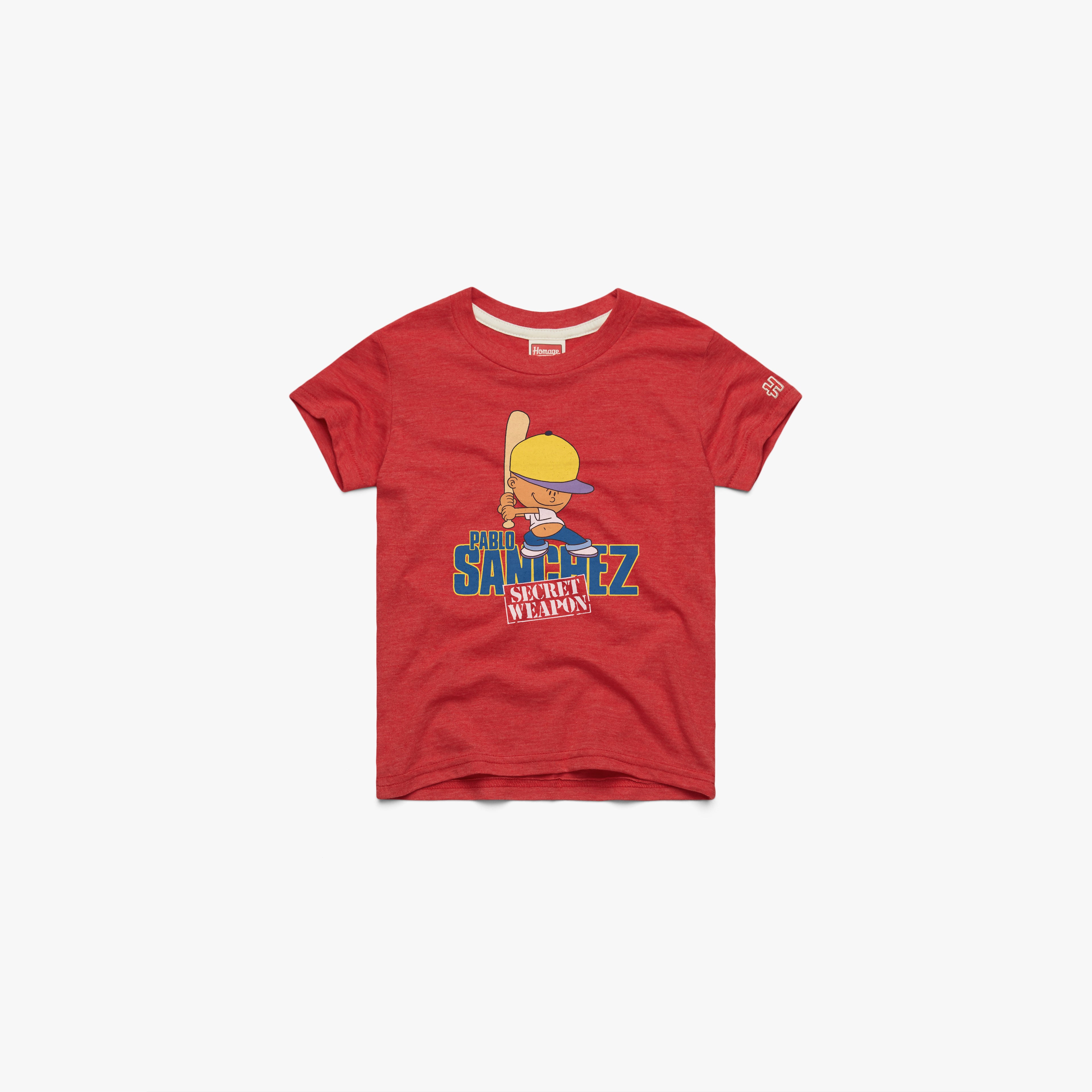 Rep a classic baseball video game and its most famous Secret Weapon with a tee for Backyard Baseball, and Pablo Sanchez. Athlete extraordinaire, team player, and all-around great guy. Head to Tin Can Alley and knock one outta the park with a retro favorite. Pay homage.