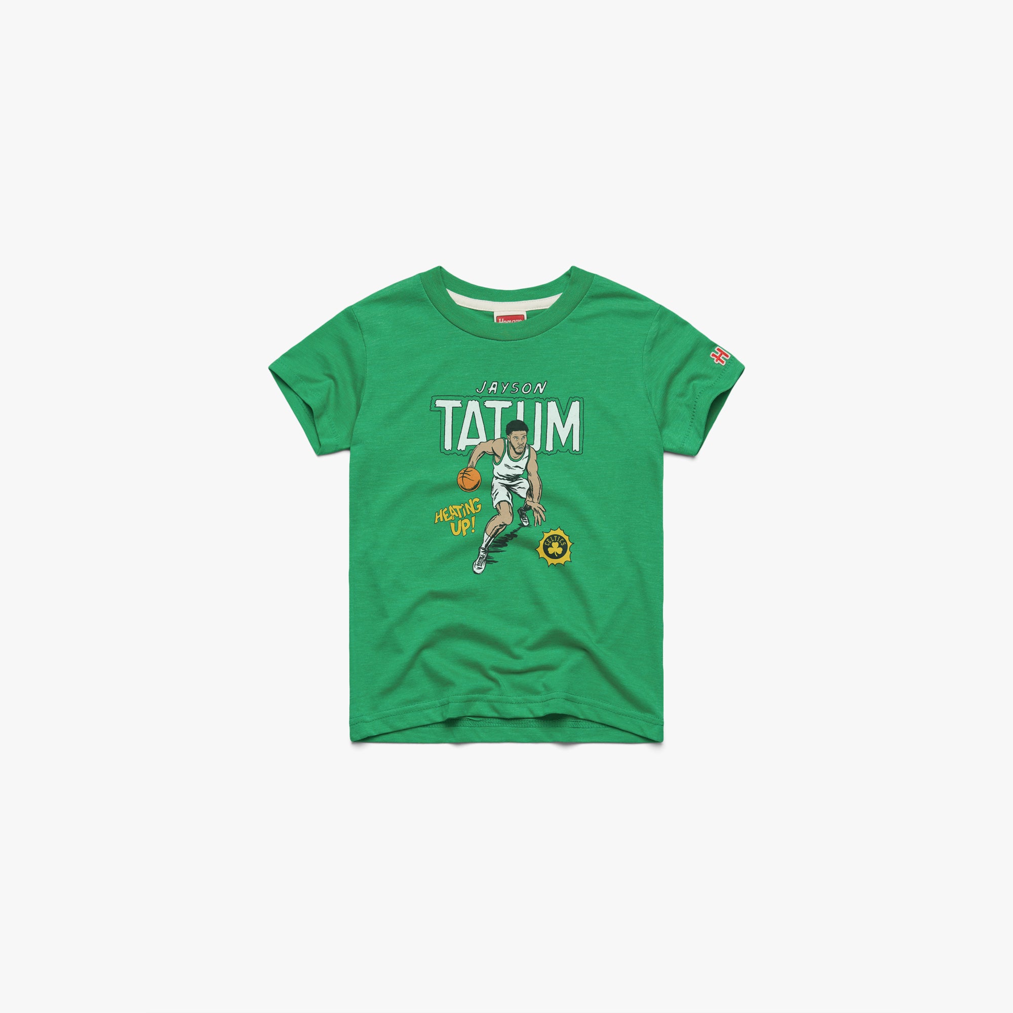 Heating up! Boston Celtics superstar Jayson Tatum is tearing up the courts on our super-soft illustrated hoops kids tee. Get in the paint!