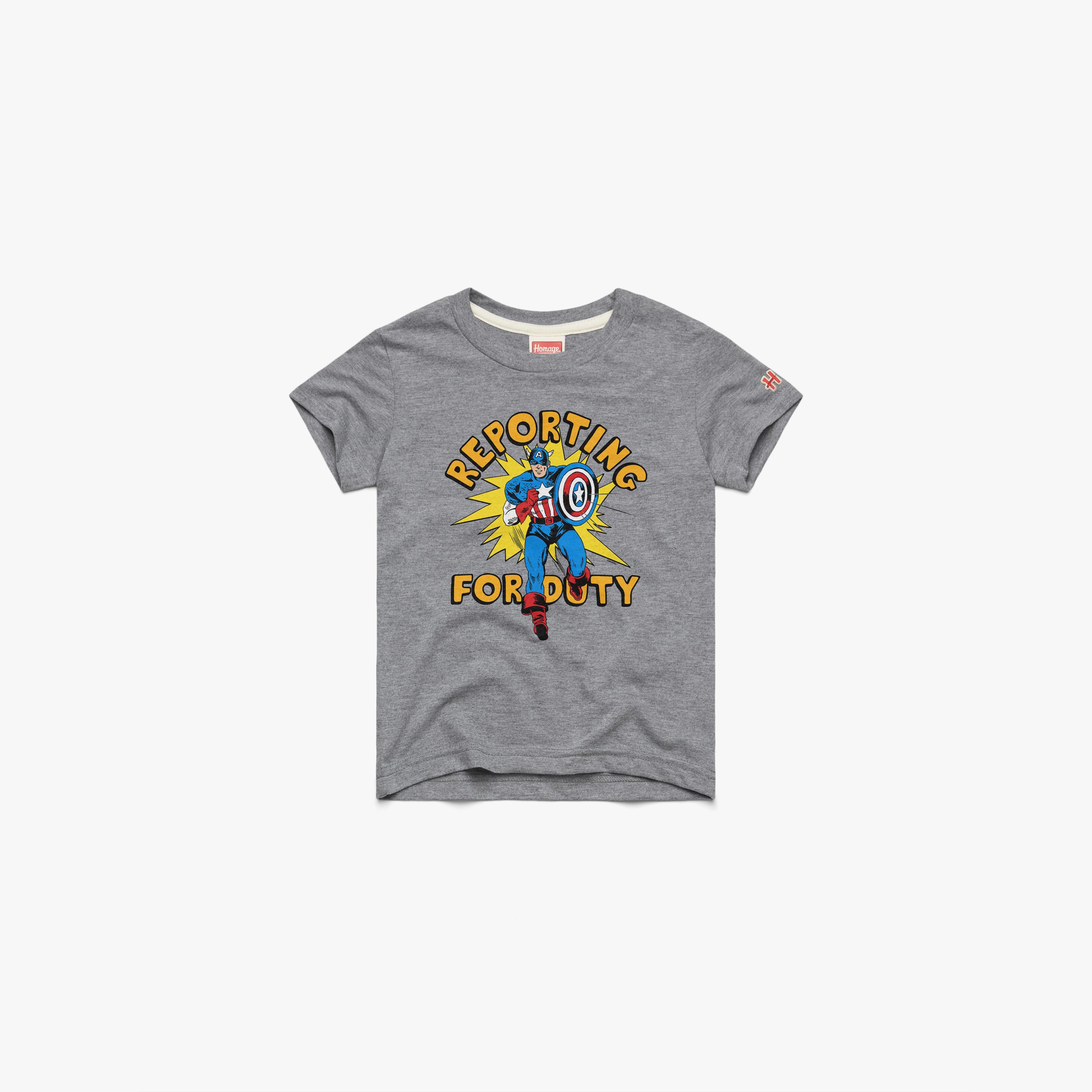 America’s greatest hero, reporting for duty. Rep the super-solider who defends the red, white and blue with this super-soft look for Captain America, and pay homage.