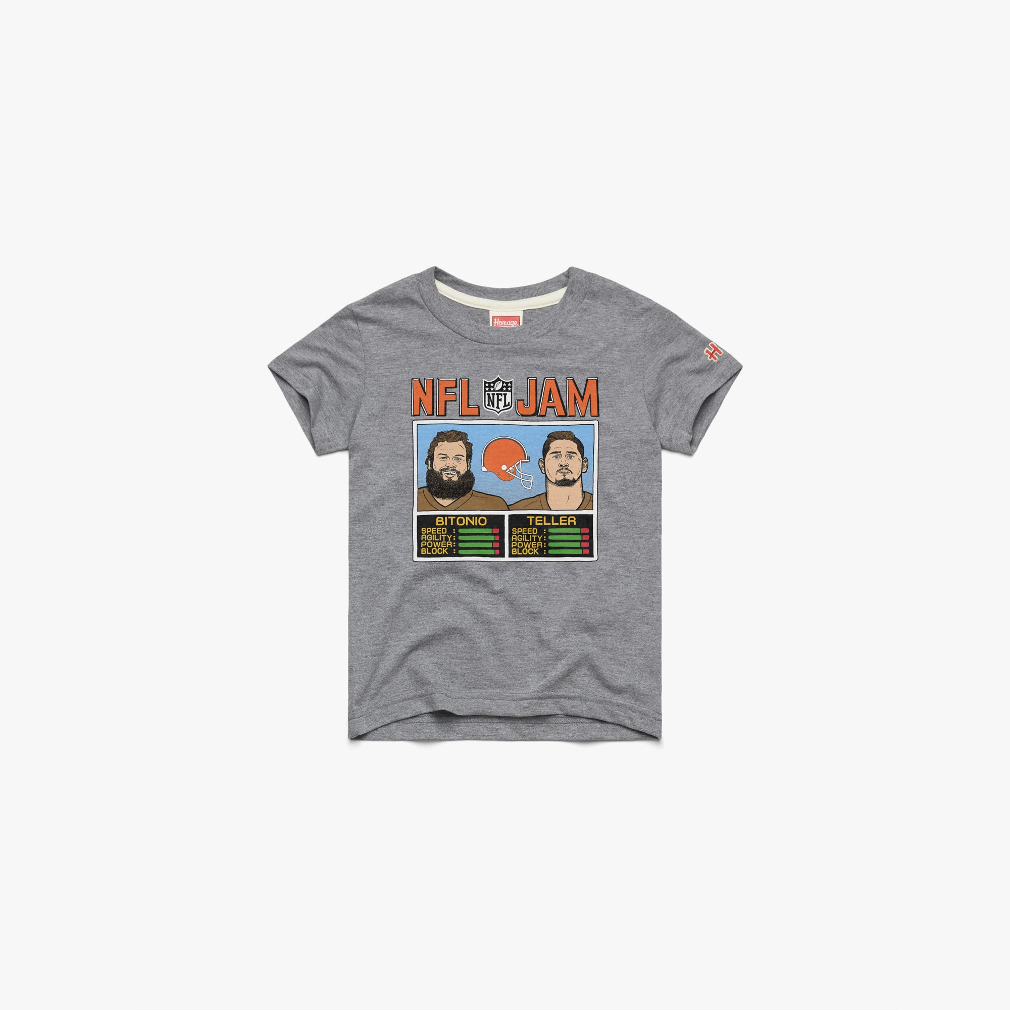 Boomshakalaka! NFL Jam is here! Rep your favorite Cleveland Browns duo with a kids super-soft tee for Joel Bitonio and Wyatt Teller, and let’s get ready for some football. They’re on fire!