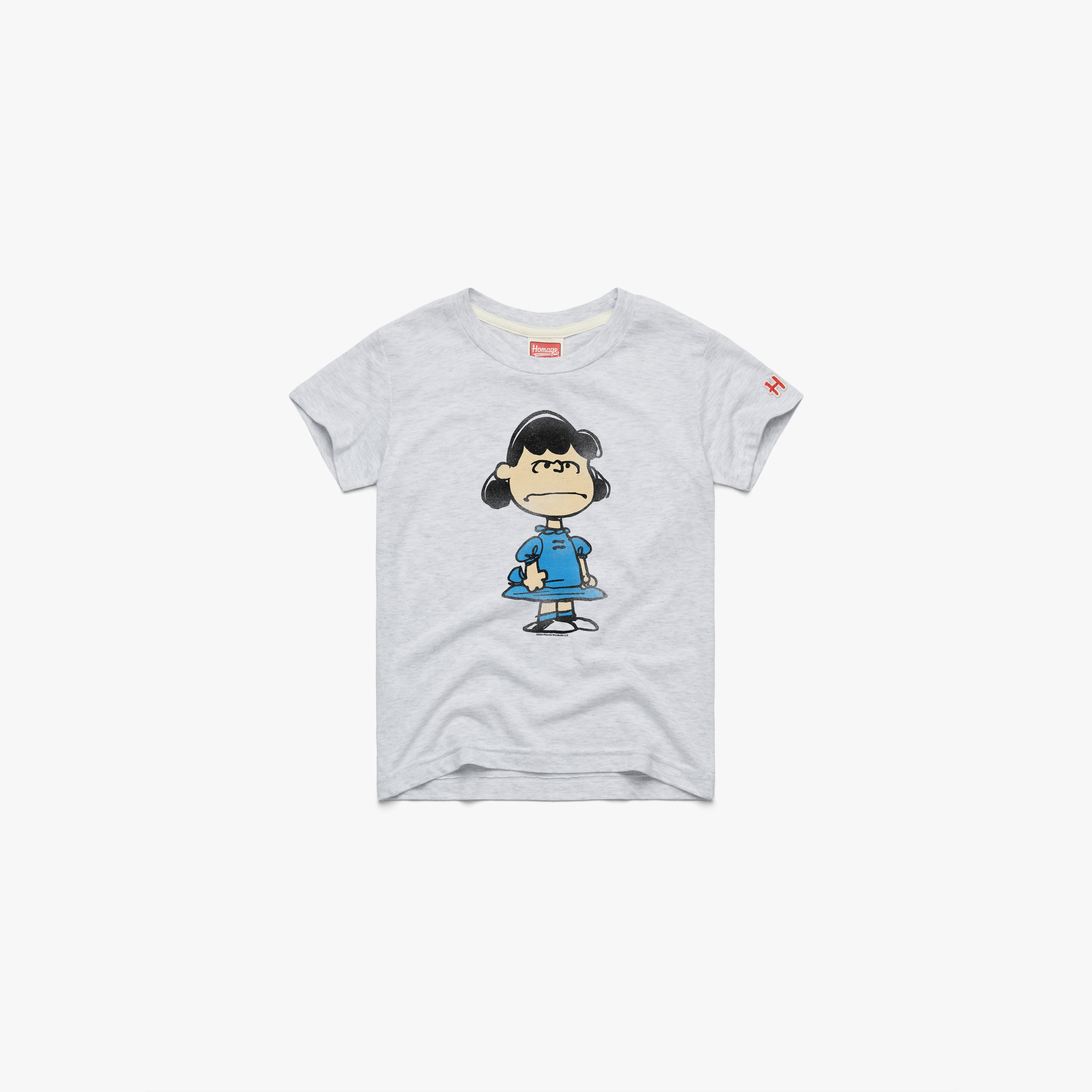 Psychiatric advice, a gift for sarcasm, and a big crush on Schroeder–that’s Lucy van Pelt. Rep the thorn in Charlie Brown’s side and an iconic Peanuts character with this super-soft look. Pay homage.