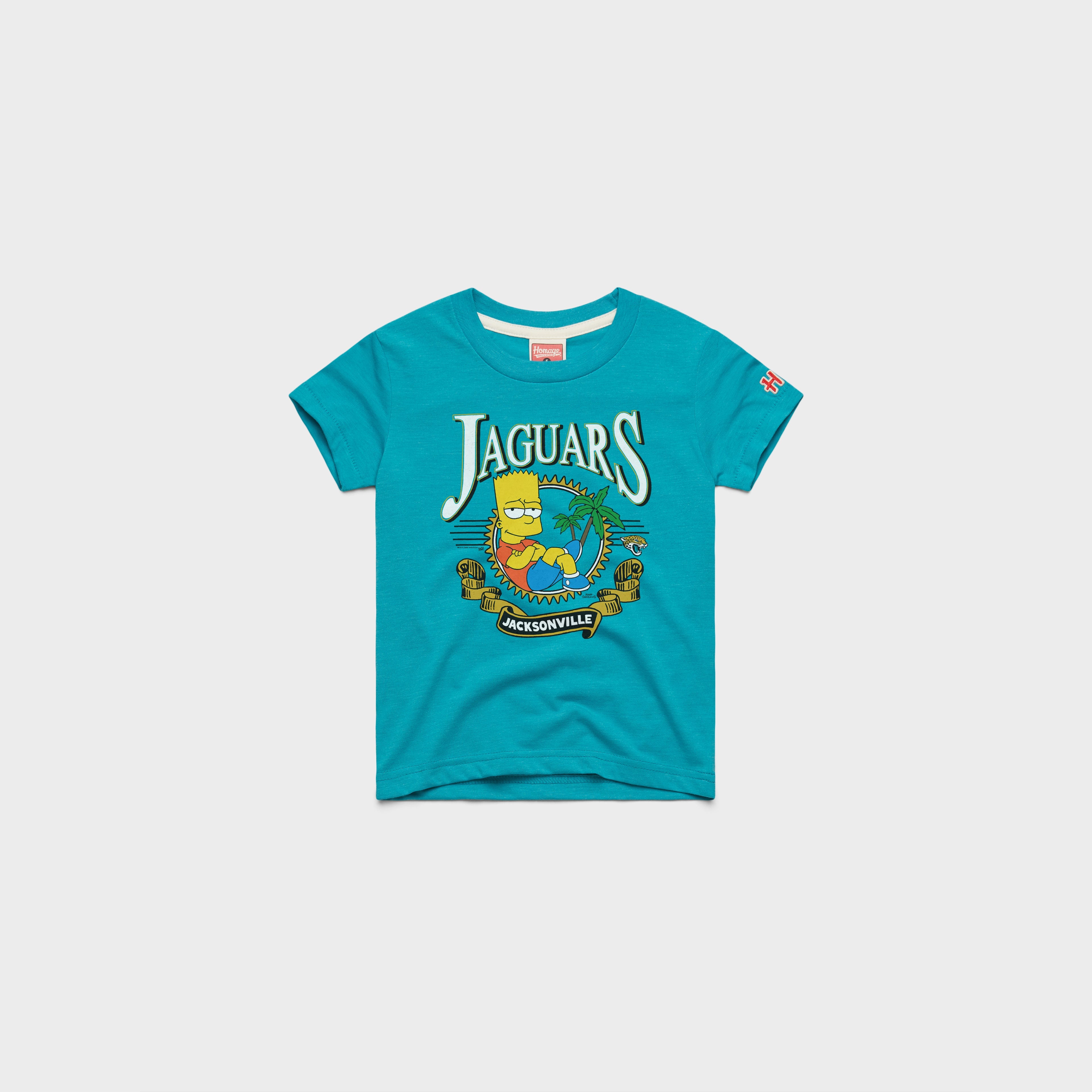 The ultimate cartoon rebel meets the ultimate football fanbase in a once_in_a_generation crossover. This time, Bart is calling the plays with a super-soft look for The Simpsons and your Jacksonville Jaguars.