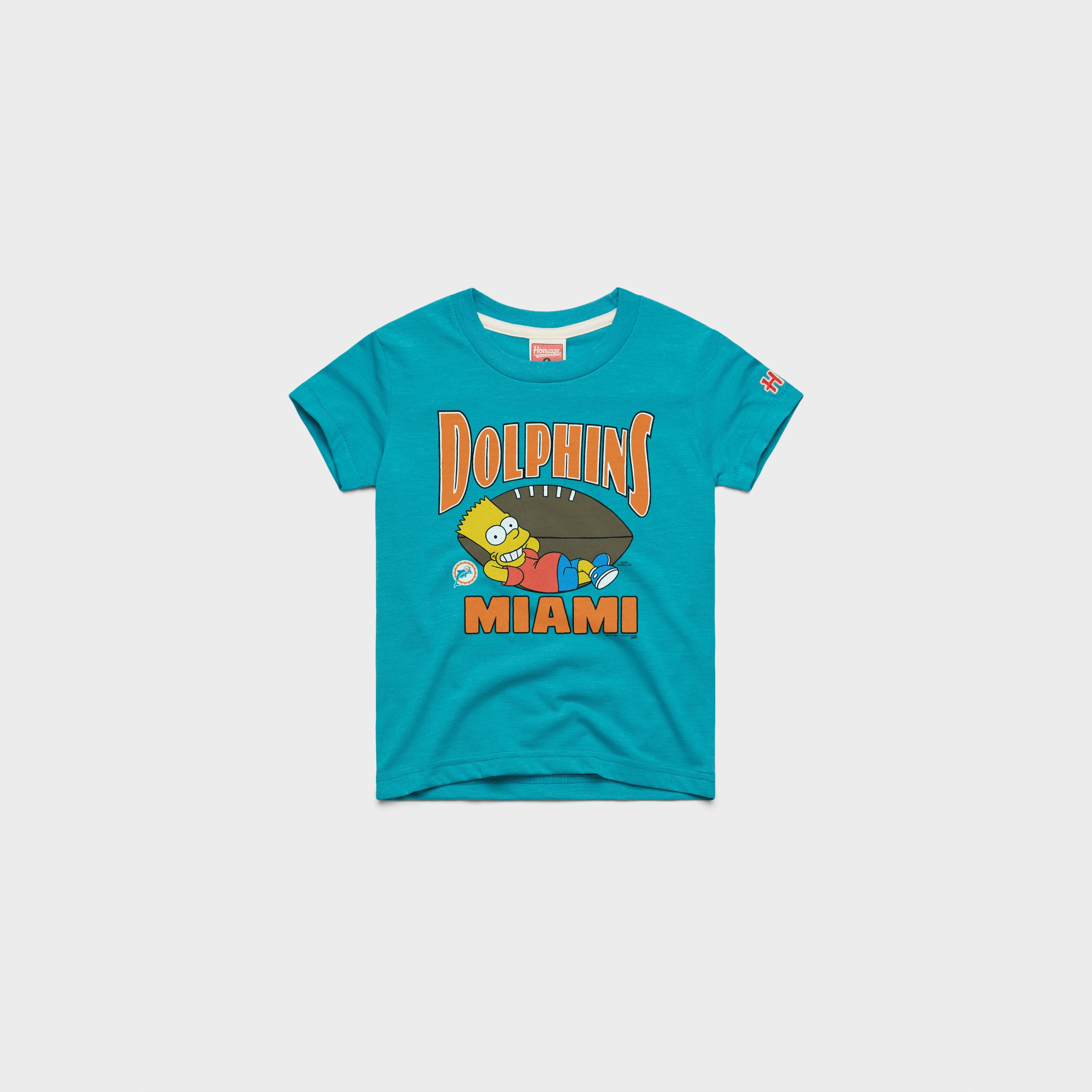 The ultimate cartoon rebel meets the ultimate football fanbase in a once_in_a_generation crossover. This time, Bart is calling the plays with a super-soft look for The Simpsons and your Miami Dolphins.