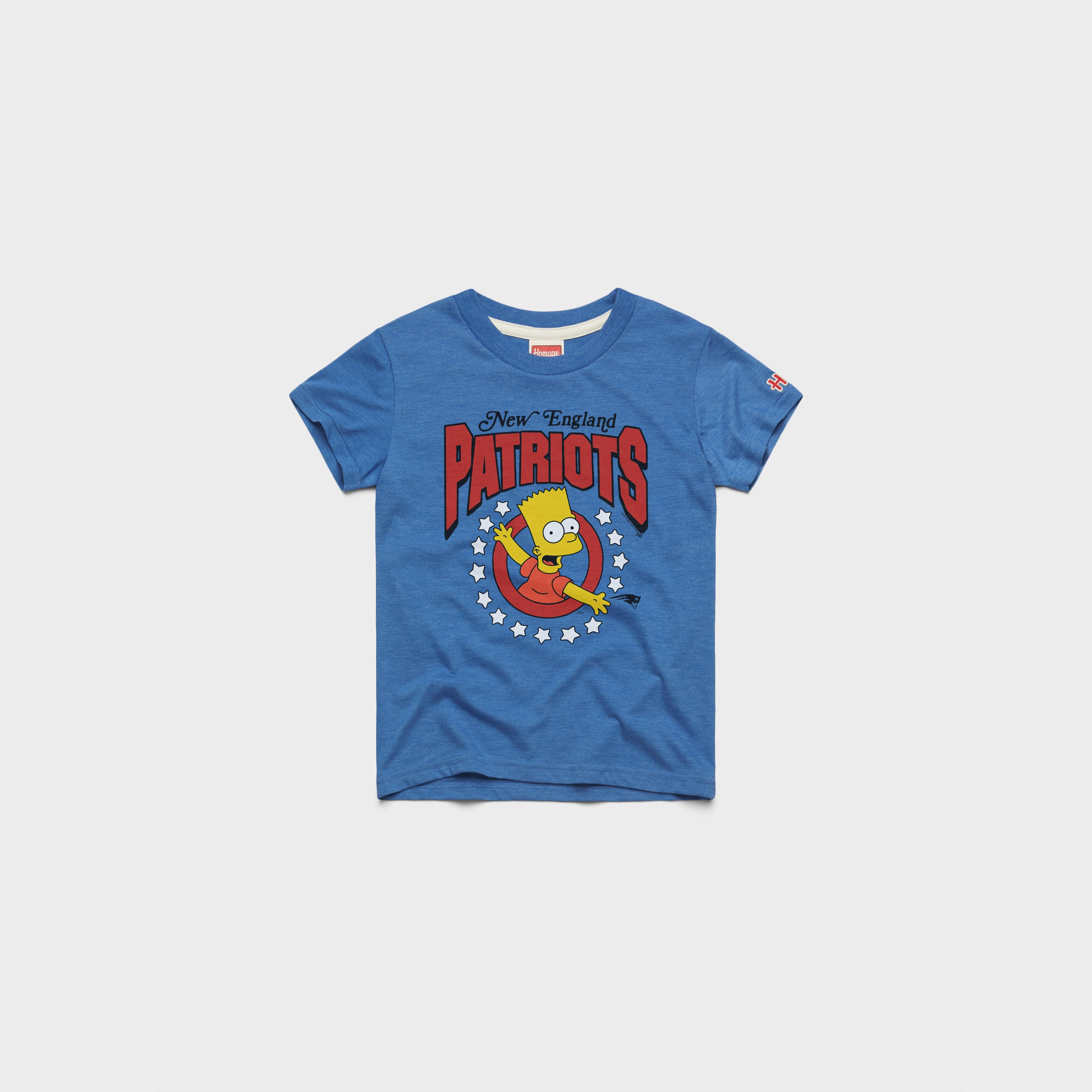 The ultimate cartoon rebel meets the ultimate football fanbase in a once_in_a_generation crossover. This time, Bart is calling the plays with a super-soft look for The Simpsons and your New England Patriots.